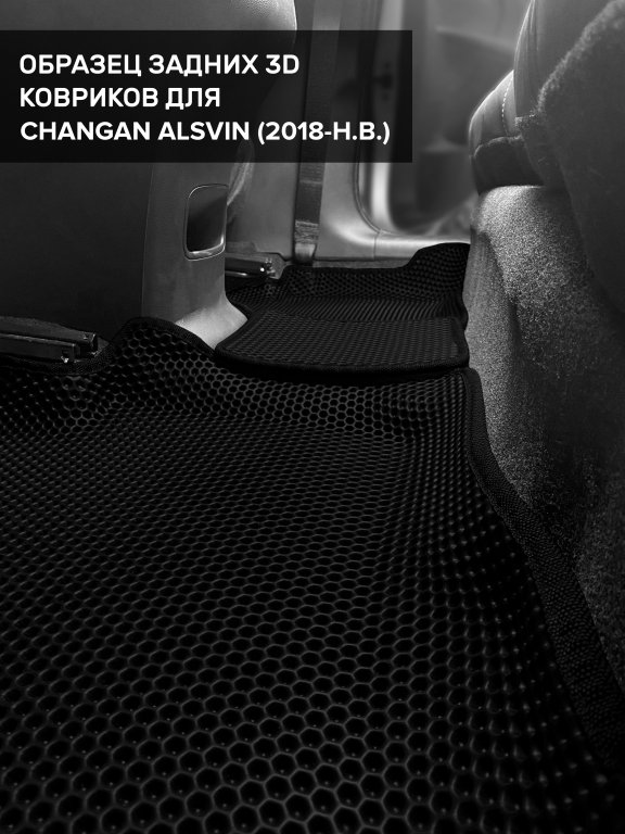 Автомобильные 3д коврики для Changan Alsvin (2018-н.в) в салон авто и багажник сделаны из инновационного полимерного материала EVA, изысканная структура в виде ячеек не дает воде, пыли и снегу разлетаться по салону машины и багажнику. 3д коврики зафиксированы на полу определенными клипсами, соответствующими Changan Alsvin (2018-н.в), и не двигаются в процессе езды.
