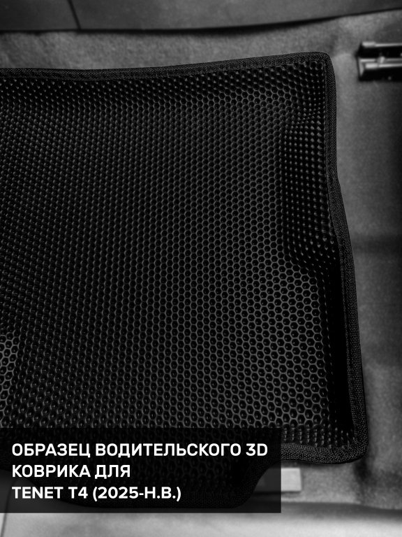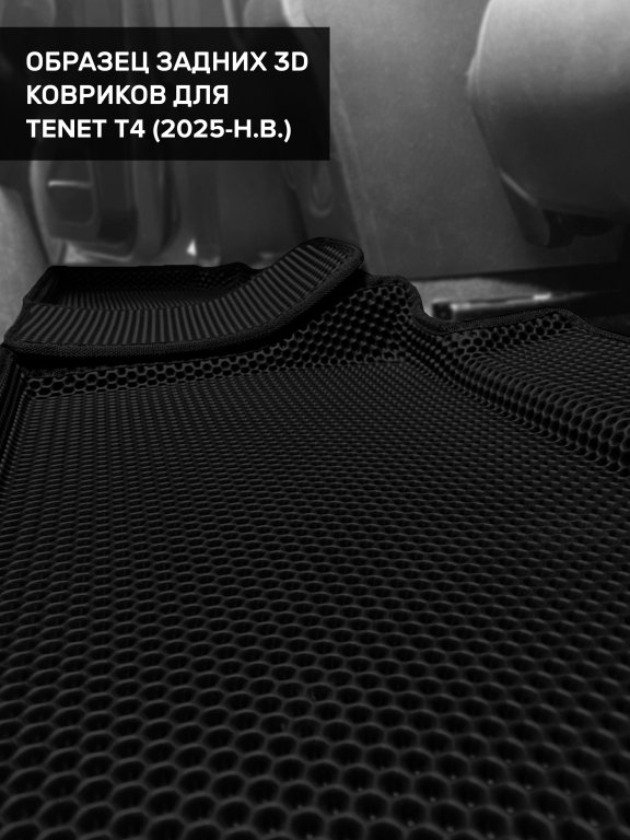 Автомобильные 3д коврики для TENET T4 (2025-н.в.) в салон авто и багажник сделаны из инновационного полимерного материала EVA, изысканная структура в виде ячеек не дает воде, пыли и снегу разлетаться по салону машины и багажнику. 3д коврики зафиксированы на полу определенными клипсами, соответствующими TENET T4 (2025-н.в.), и не двигаются в процессе езды.